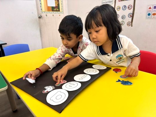 Nursery: Naming and matching “Huruf Vokal” in Bahasa Melayu.